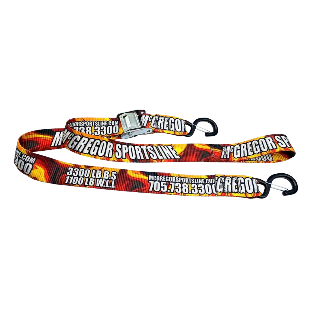Our customizable 2 inch cam straps are the perfect solution for securing your cargo in style. Each strap features an adjustable 6-foot length, 3,300lb break strength, and 1,100lb recommended working load limit, making them ideal for a wide range of applications. What really sets our cam straps apart is their ability to be customized with any of our unique designs, or even your own custom artwork. Simply leave your design choice or artwork details in the notes section when placing your order.