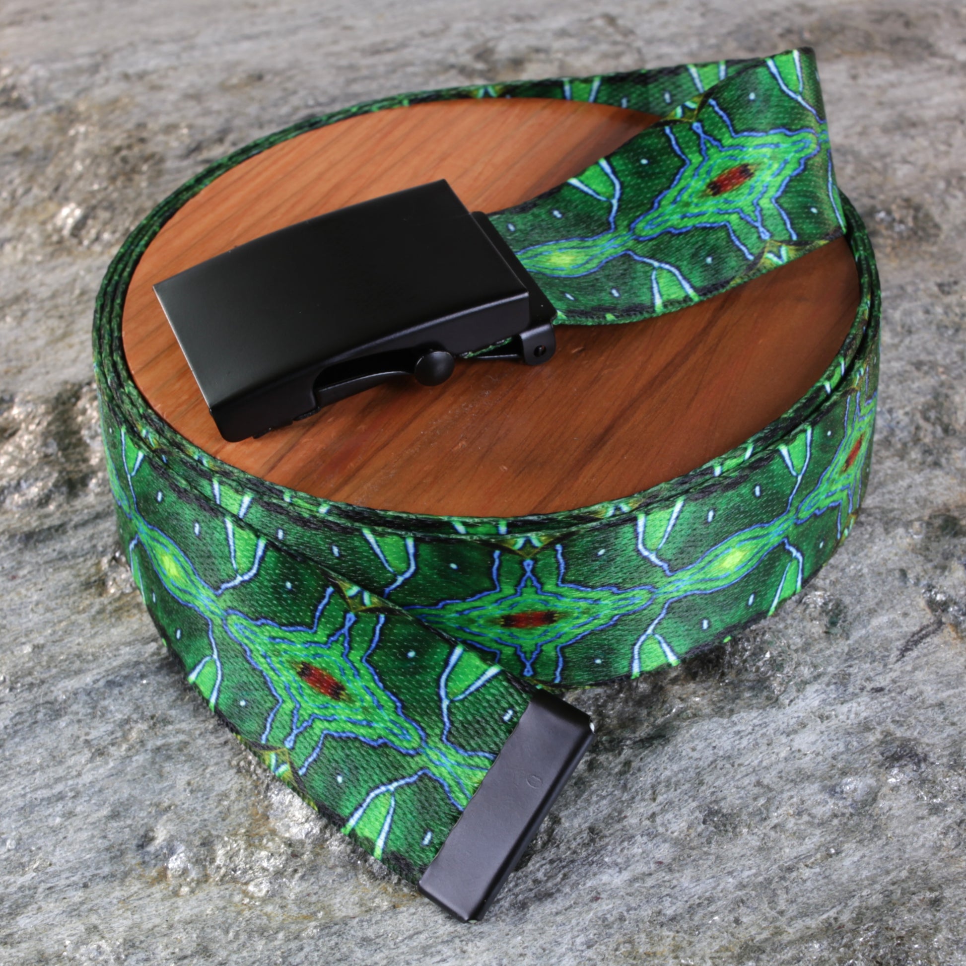 Inspired by the mysteries of the ocean and the intricate art of tribal patterns, this belt is a true masterpiece. The vibrant greens and intricate design make it perfect for anyone who loves to stand out with a splash of color and culture.